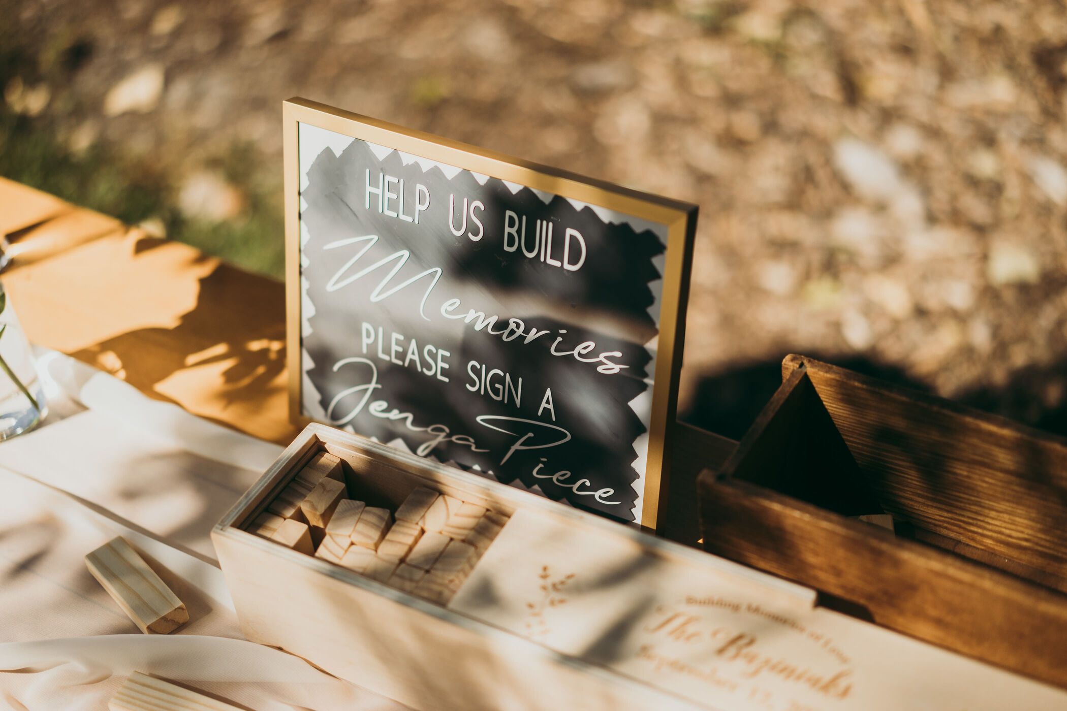 Right out of the gate, we had a gorgeous handmade mountain sign, a gorgeous seating chart and custom-designed corn hole games. Guests were certainly wowed by the details.