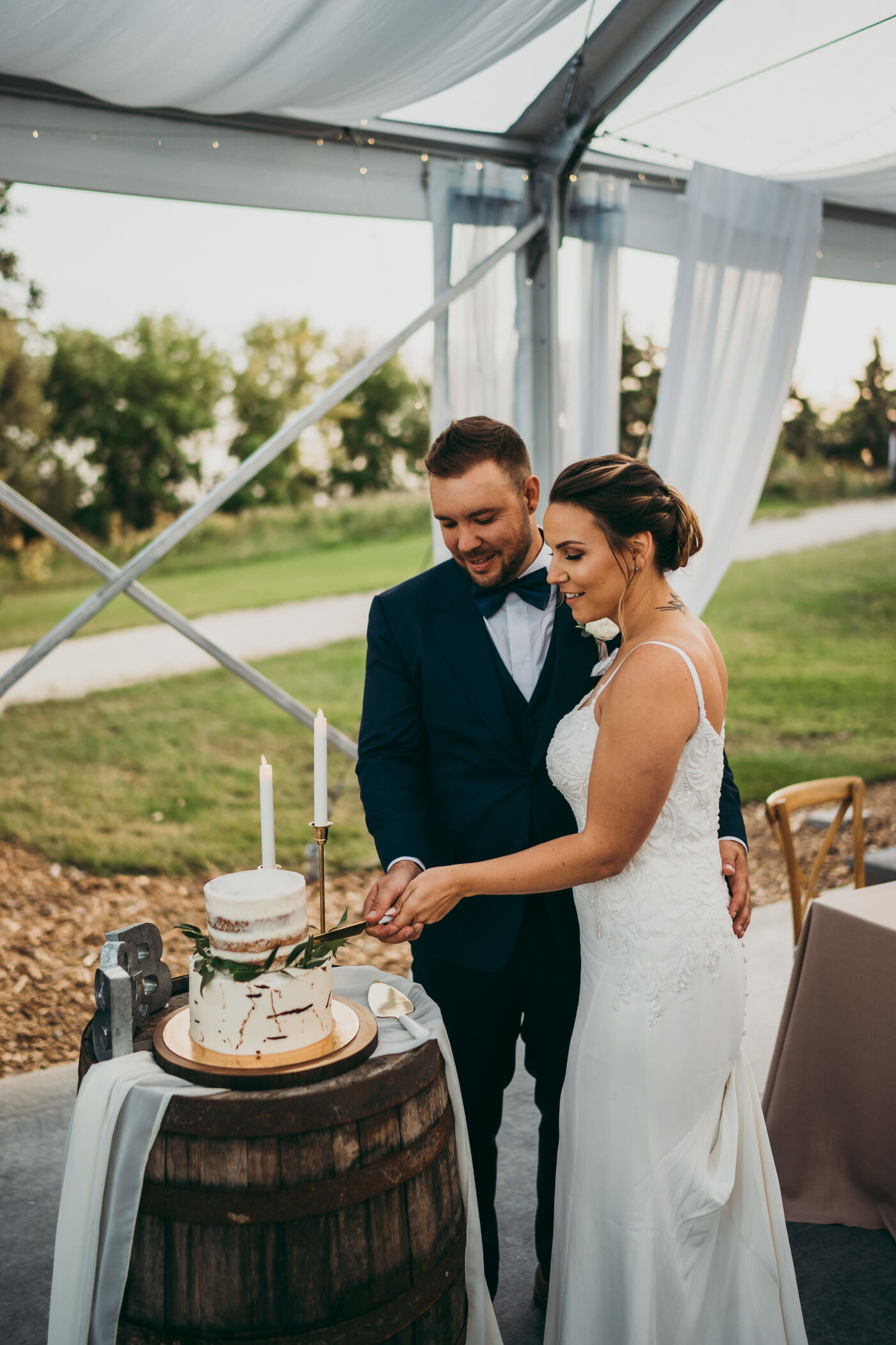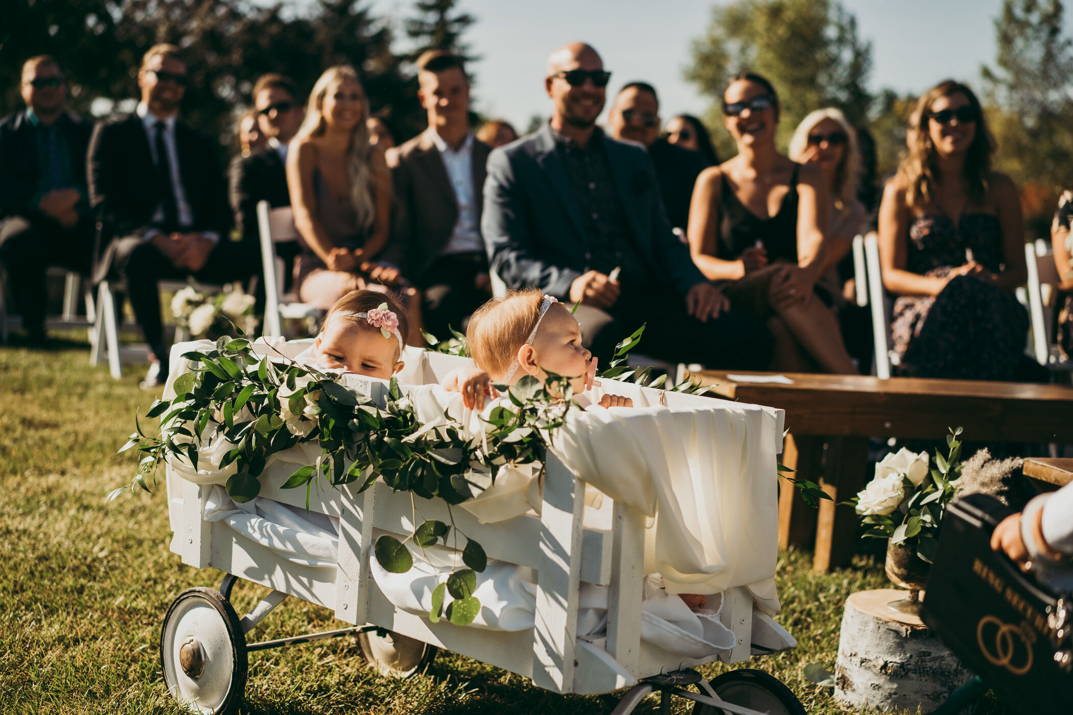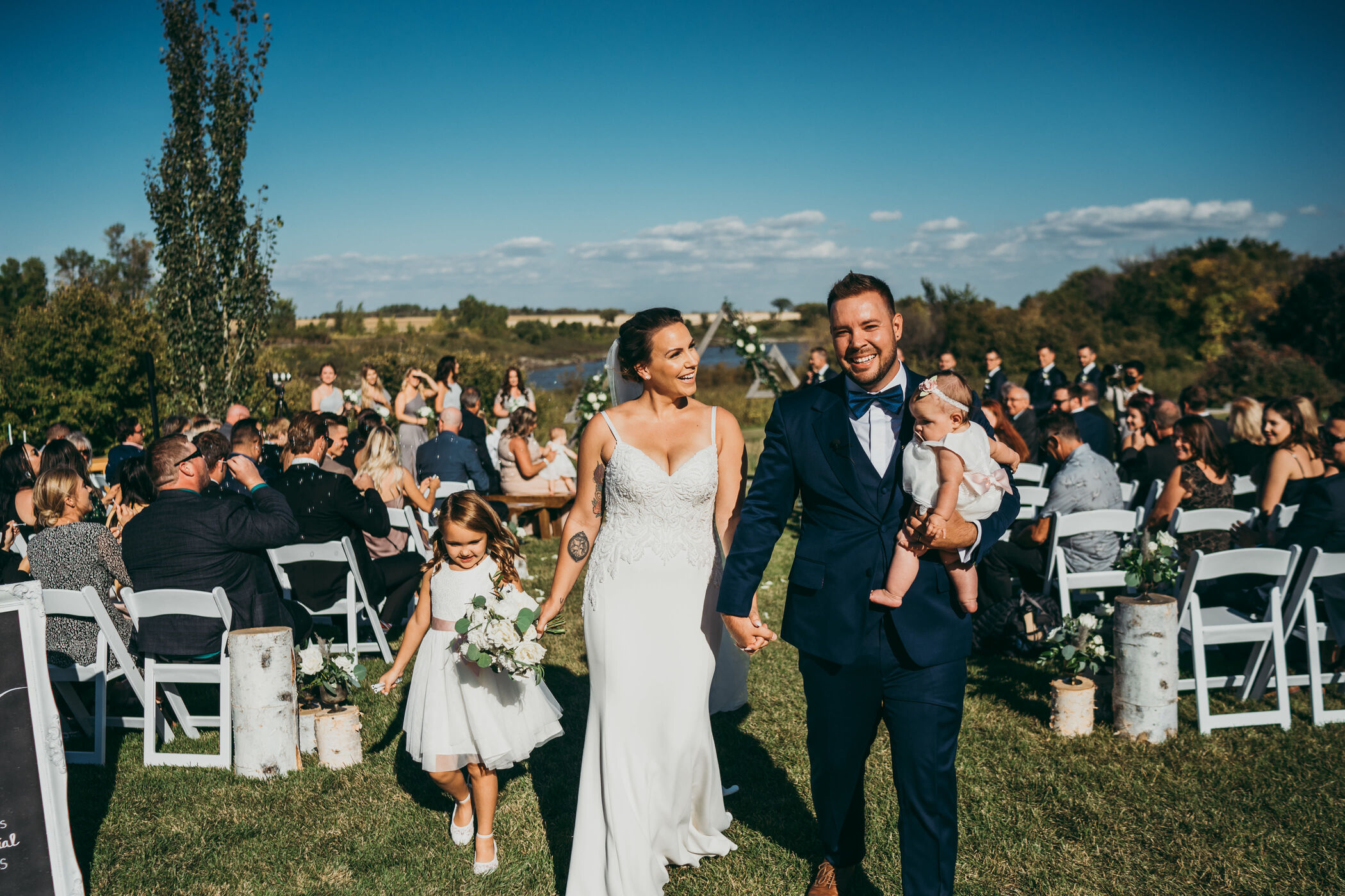 For the ceremony, we decided to bring the mountains to the prairies. The groom built this amazing arch that was then re-used behind the head table at the reception. It was certainly a conversation piece. His craftsmanship was seen throughout the entire wedding.