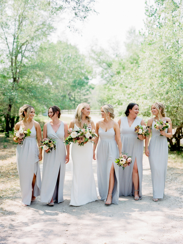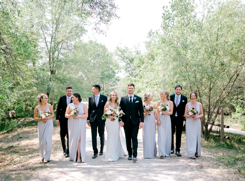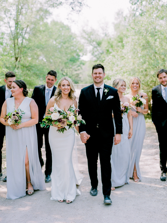 Erika radiated from cheek to cheek the entire day. The energy from her and Jace, not to mention their stunning wedding party was a true joy to be around. The bridesmaids opted for a light grey dress in mix and match styles and the groomsmen wore black suits with pocket squares to match the girls. These colours blended perfectly with the warm floral arrangements.