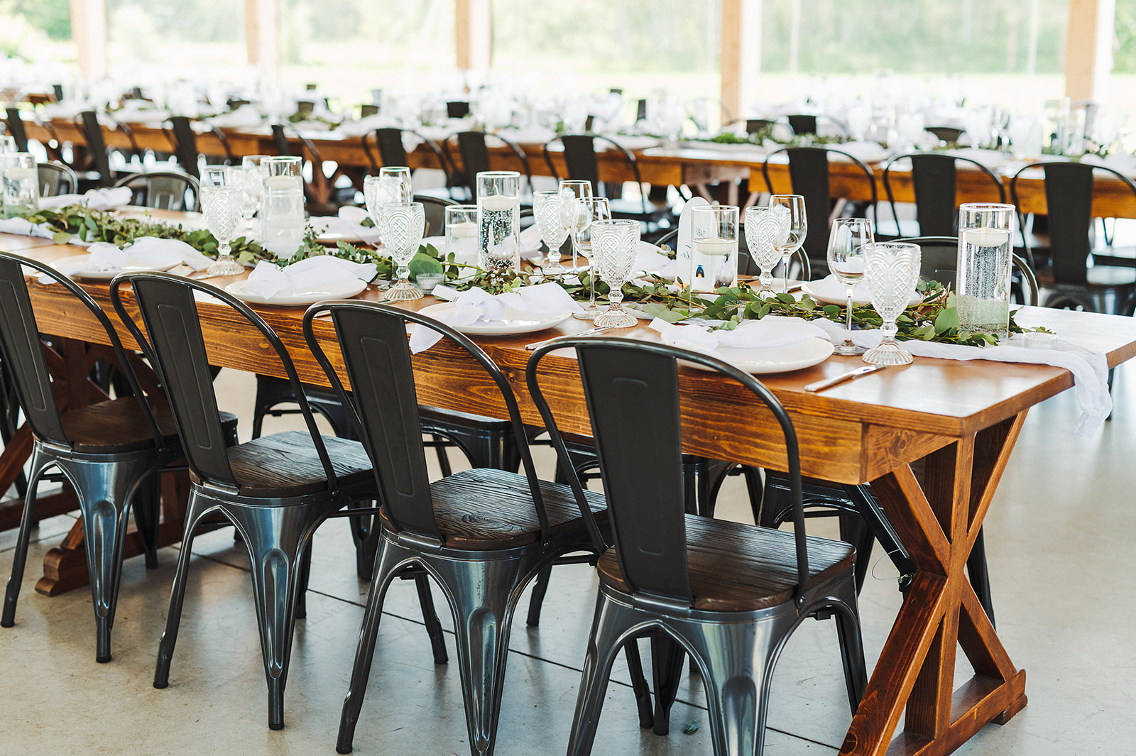 They opted for a very romantic sweetheart table instead of the traditional head table. We went with a very modern and clean look with a nice touch of greenery. We wanted it to be clean and simple yet beautiful!