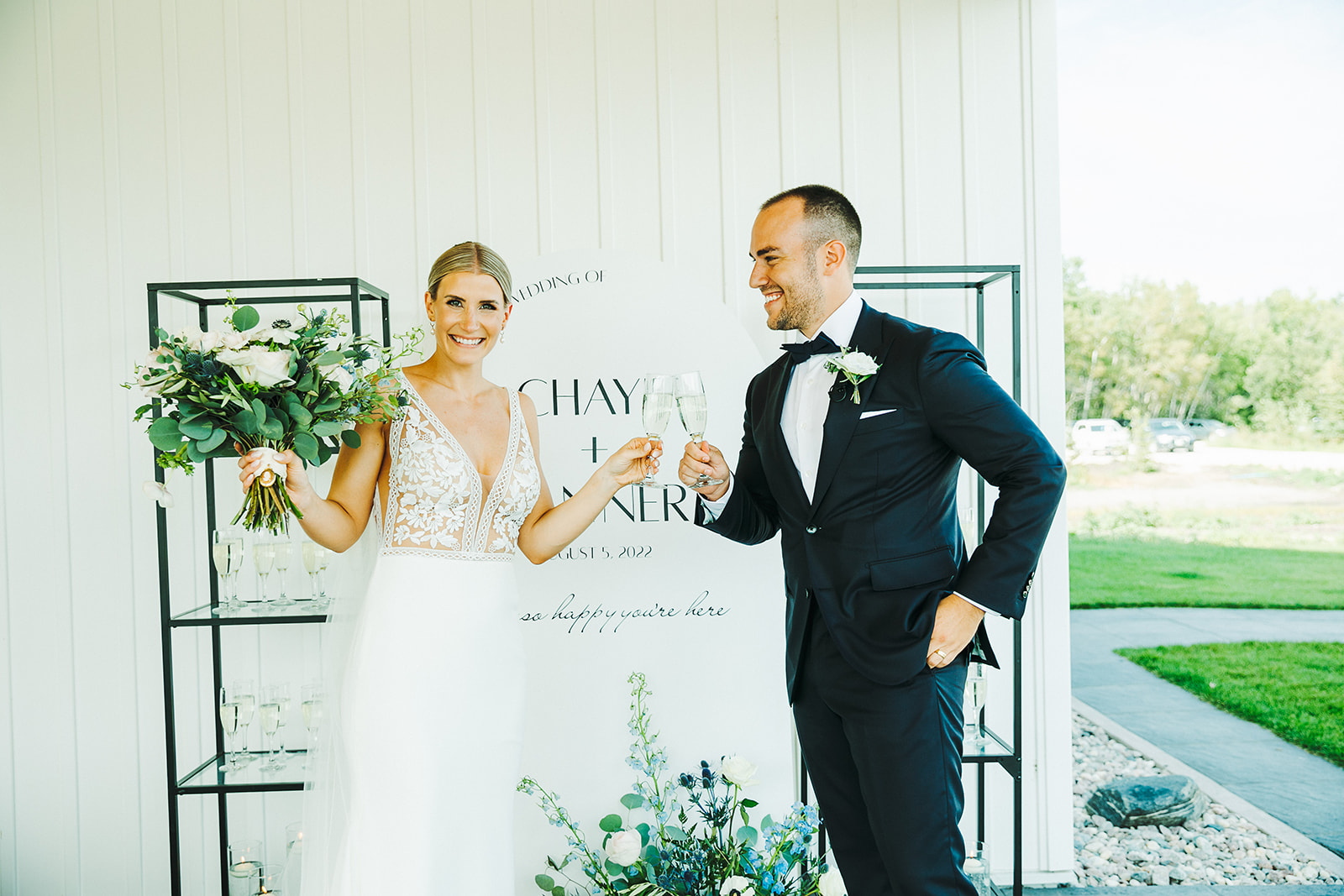 They decided to get creative and do some DIY projects for their big day. Starting off with the stunning ceremony arch. They even created all of the signage which all turned out beautifully! If you have the ability to do DIY projects it can be a great way to save money or allocate it to something else that is a priority for you! I’m obsessed with how the seating chart and champagne welcome sign turned out. Such a gorgeous focal point.