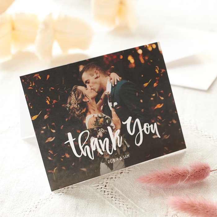 Almost as important as the wedding invitation itself, do not forget to send thank you cards! No matter how crazy the following weeks after your wedding may be, thanking your guests for the time and effort they put into being part of your wedding is vital. Generally, thank-you cards should include the gift giver’s name, what they bought, and a note of appreciation. They should be sent out within three weeks of receiving the gift. If you want to include photos from your wedding on or within your thank-you cards, they can be sent out a little later.