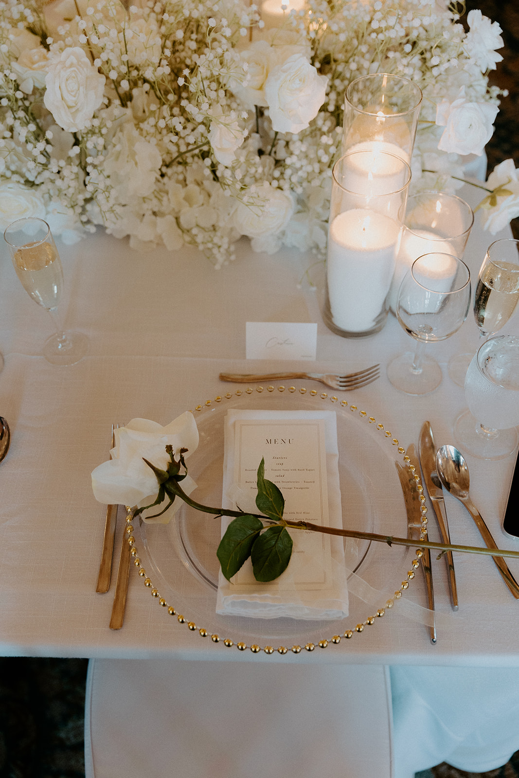 One of the personalized touches we loved was the head table. Rejecting the traditional long head table at the front of the reception space, the couple opted for a centre table immersed in the crowd with all their guests. This perfectly reflected their personalities as they don’t like being the centre of attention and would rather have a more intimate setting, sharing the spotlight with their closest friends and family. This style of table felt less front and centre while still being grand and beautiful.